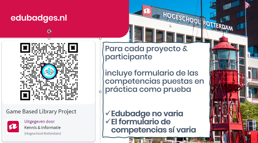 En este caso concreto para el desarrollo de este juego todavía no había una edubadge un micro credencial que premiase las competencias necesarias para cumplir con los objetivos de. aprendizaje necesarios para ‘desarrollar un juego para aprender y practicar competencias informacionales en equipo interdisciplinar’ como se refleja en la descripción de la edubadge.