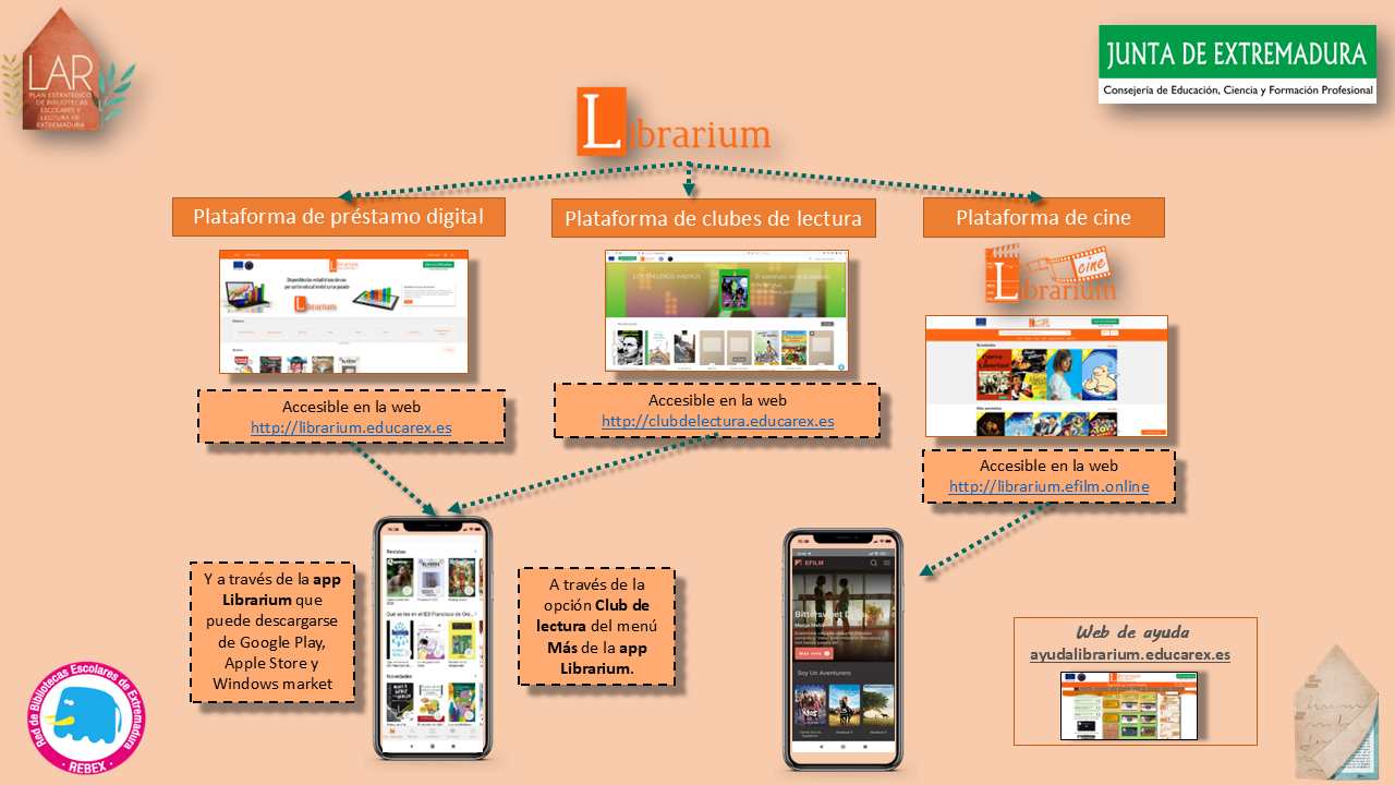 El programa facilita el desarrollo de proyectos de innovación teniendo a Librarium como eje o herramienta principal para fomentar la lectura de información y ocio, mejorar la comprensión lectora del alumnado y ampliar los recursos y materiales de las bibliotecas escolares potenciando su digitalización; porque Librarium no es la biblioteca digital de nuestra Consejería, sino la biblioteca digital de todas las bibliotecas escolares extremeñas.