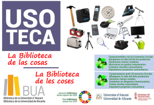 Desde inicios de 2024, la Biblioteca de la Universidad de Alicante ha puesto en marcha su Usoteca. Se trata de una biblioteca de las cosas, es decir, un servicio de préstamo de objetos y utensilios diversos que puedan ser de utilidad para la comunidad universitaria.