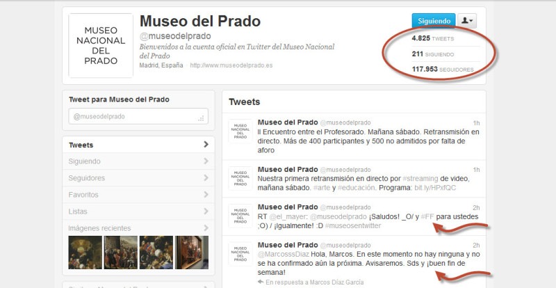 Nada más darme de alta en Twitter, comencé a seguir a algunos museos y centros culturales que me interesaban y pude contemplar cómo, lamentablemente, muchas de ellas tenían a sus seguidores bastante descuidados. No seguían a ninguno de ellos, tampoco respondían a sus tweets…