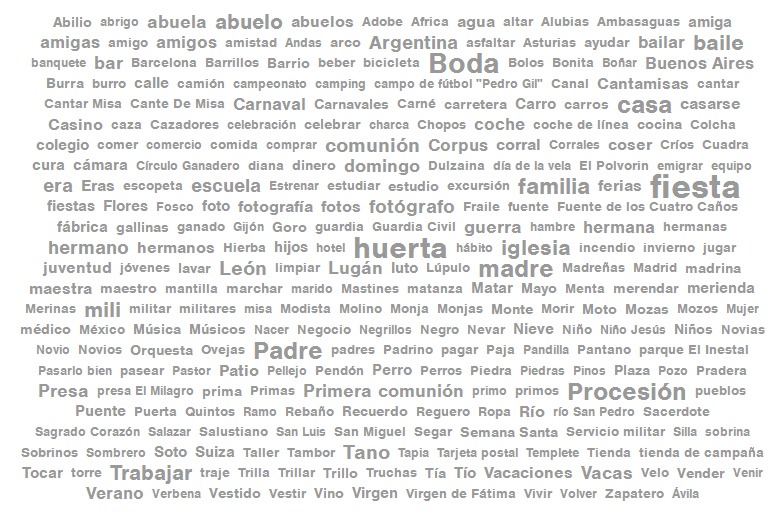 Para la organización de los materiales se ha empleado un sistema de folksonomías, tomado del modelo actual de etiquetado empleado en Internet. Tan sólo echando un vistazo a la nube de etiquetas empleadas ya se pueden sacar algunas conclusiones etnográficas, pero eso es otro tema… o quizás es el mismo.